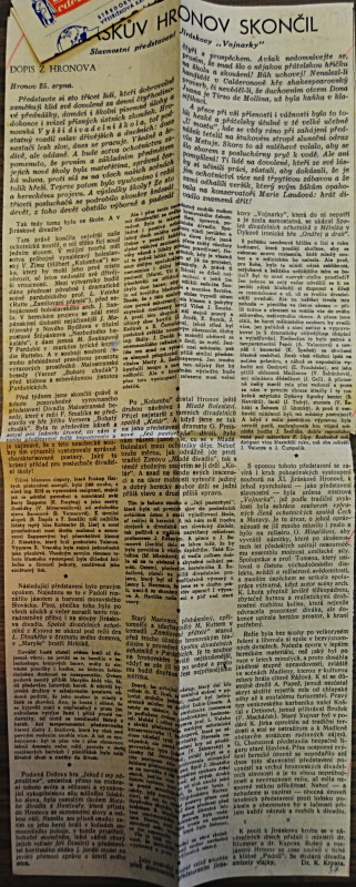 RYDVAN, Jakub: Hronovské slavnosti výrazem svědomí ochotnictva. Národní politika 1941, č. 221, s. 6.