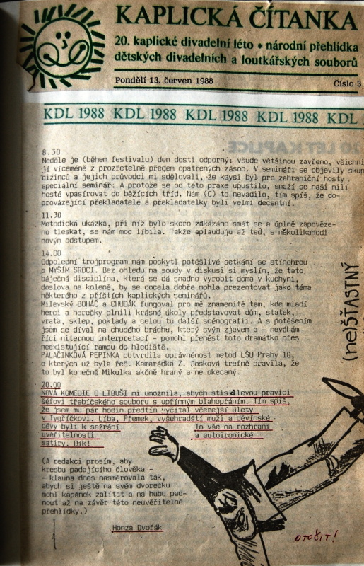 Zdroj: Foto Karel Kerlický. 20. Kaplické divadelní léto. Čs. loutkář 1988, č. 11, čtvrtá strana obálky.