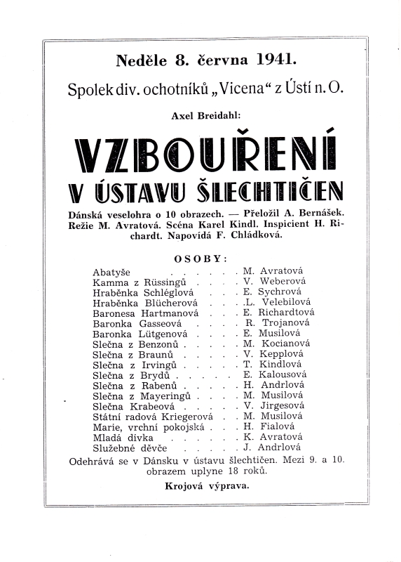 Ústí nad Orlicí, Vicena, Axel Breidahl - překlad A. Bernášek: Vzbouření v ústavu šlechtičen, r. M. Avratová.