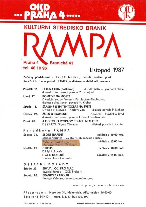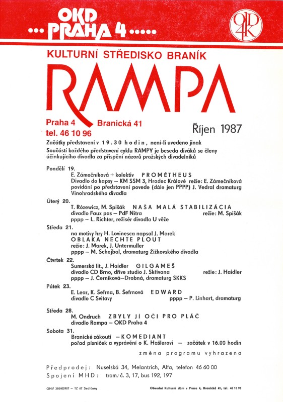 Praha-Braník, Rampa, soubor programových letáků 1987-1990 - viz Přílohy.