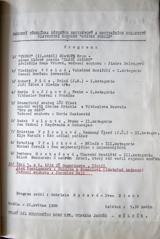 Třebíč, Recitační soubor, Pohádka o Nemehlovi, Mělník, NP děti recitace, 1988