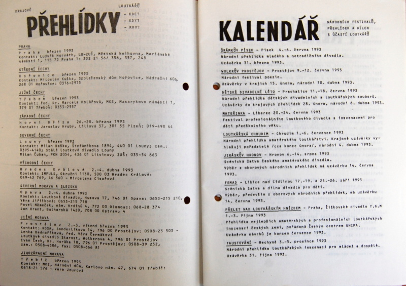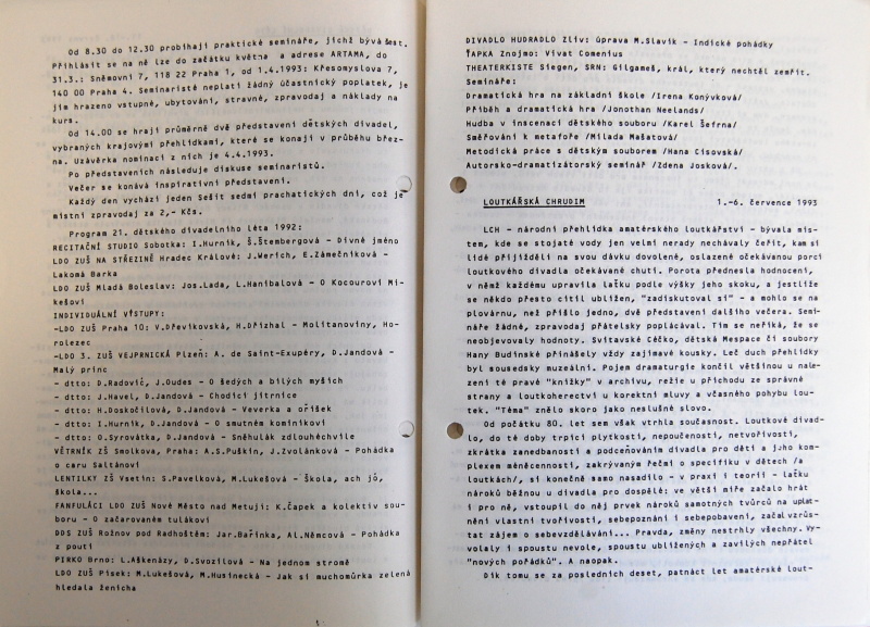 LOUTKÁŘSKÁ Chrudim. Loutkář, roč. 43, č. 6, 1993, s.135 -nepodepsáno. Propozice přehlídky Loutkářská Chrudim 1993 včetně výčtu plánovaných seminářů.