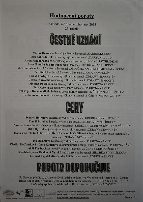 - Josefův Důl, Josefodolské divadelní jaro - 2013, ročník 23 - krajská