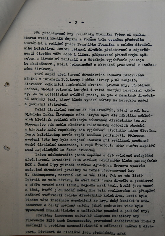 - Středočeský kraj, STROTZER, Milan: Referát pro Setkání středočeských divadelních amatérů na 55. Jiráskově Hronově, 1985