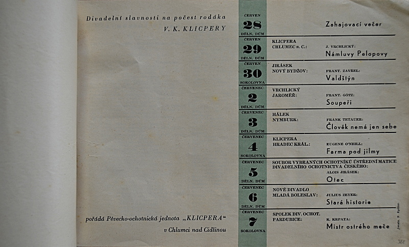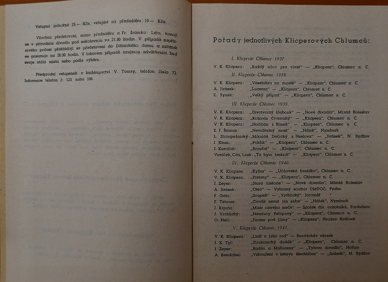 rdv.: IV. KLICPERŮV Chlumec. České divadlo 1940, č. 6, s. 101.