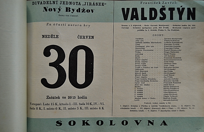 Nový Bydžov, DS Jirásek, Fr. Zavřel: Valdštýn (novinka tohoto roku).