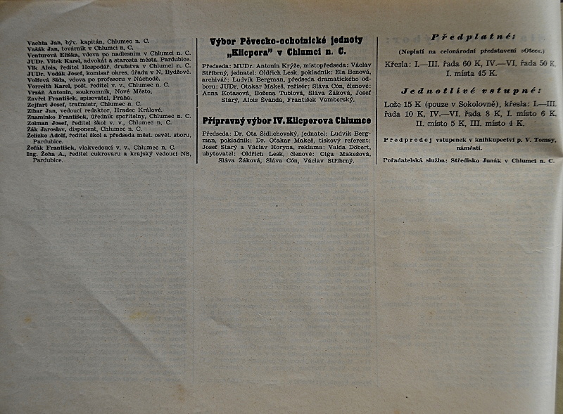 PROGRAMOVÁ brožura IV. Klicperova Chlumce – vydala div.jednota „Klicpera“.