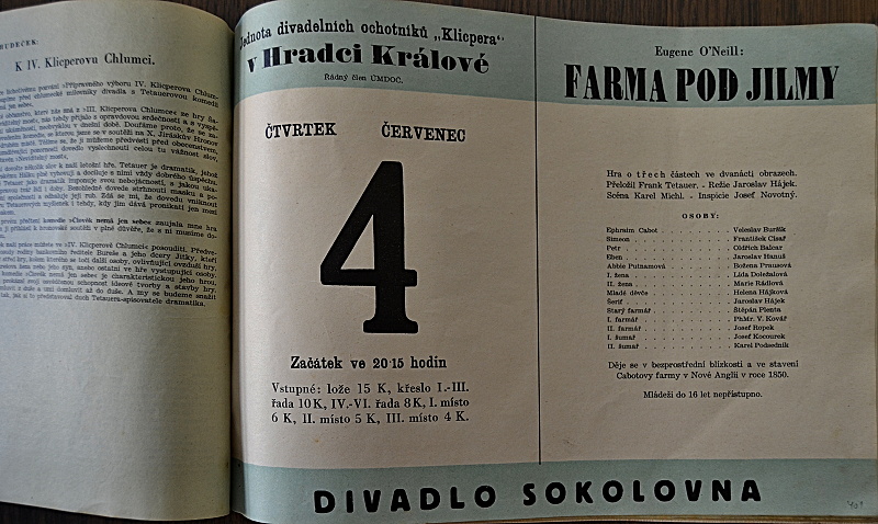 Hradec Králové, Klicperovo divadlo, O. Neil: Farma pod jilmy, r. Jaroslav Hájek.