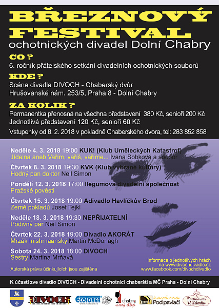 Dolní Chabry, Březnový festival ochotnických divadel - plakát, 2018