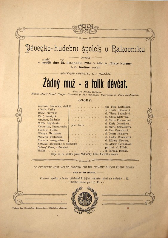 1903 opereta Žádný muž a tolik děvčat (Suppé).