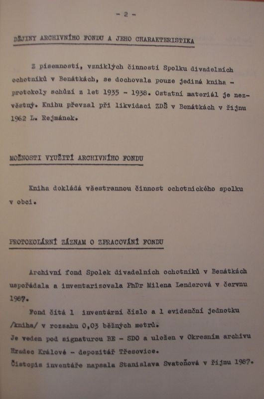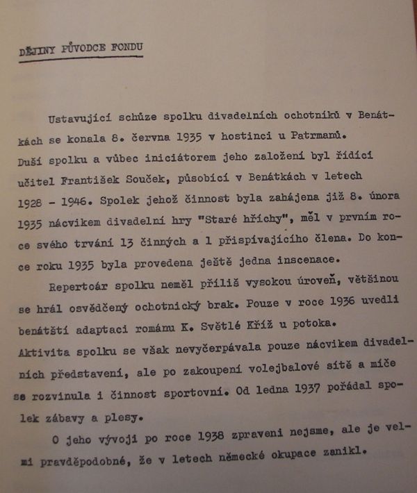 LENDEROVÁ M.: SPOLEK DIVADELNÍCH OCHOTNÍKŮ BENÁTKY 1935-1938. Inventář, 1987, s. 3, ev.č. 590.