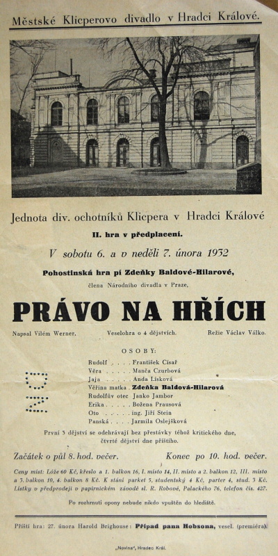 - Hradec Králové, Klicpera, Plakáty a výstřižky, 1931 - 1943