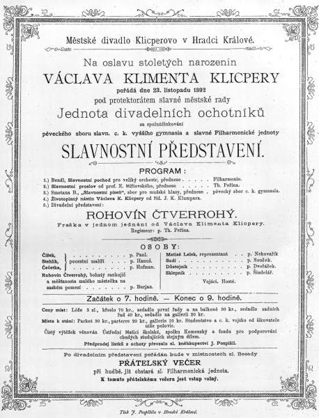 - Hradec Králové, Klicpera, Plakáty a výstřižky, 1880 - 1918