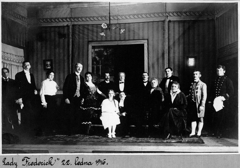 Hradec Králové, Klicpera,Vějíř lady Windermerové, účinkující na jevišti, 1921