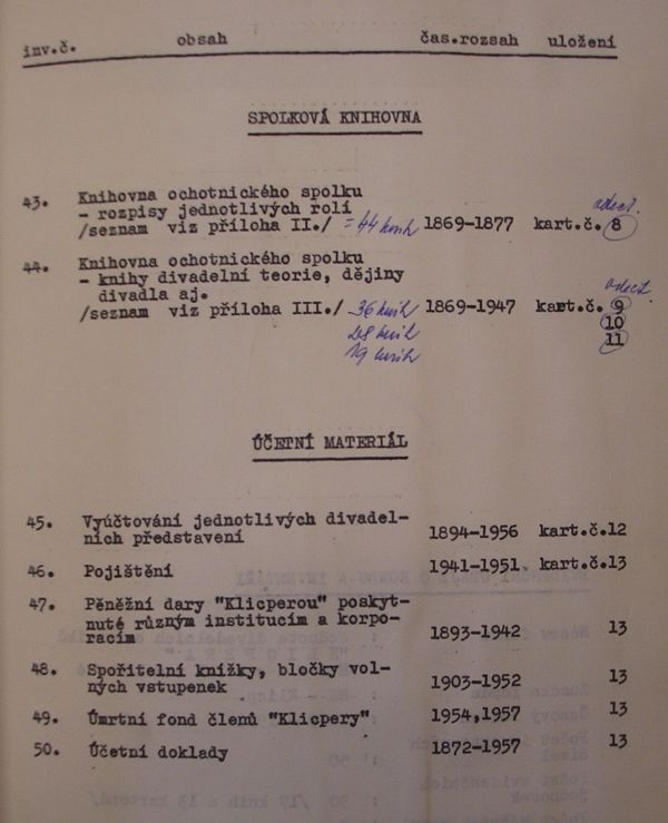 Hradec Králové, Klicpera, Dokumentace souboru, Inventář spolku, i. č. 31