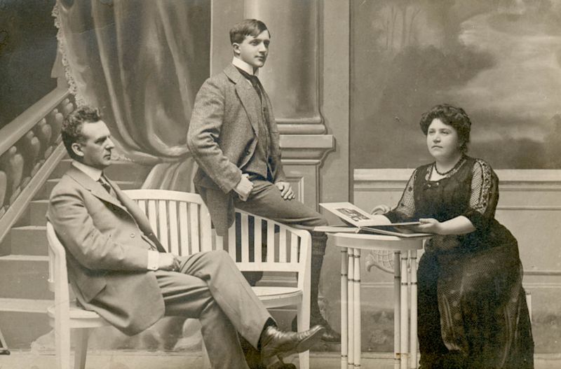 Hradec Králové, Klicpera, herci Karel Paul, R. Paulová a syn Ladislav, 1912