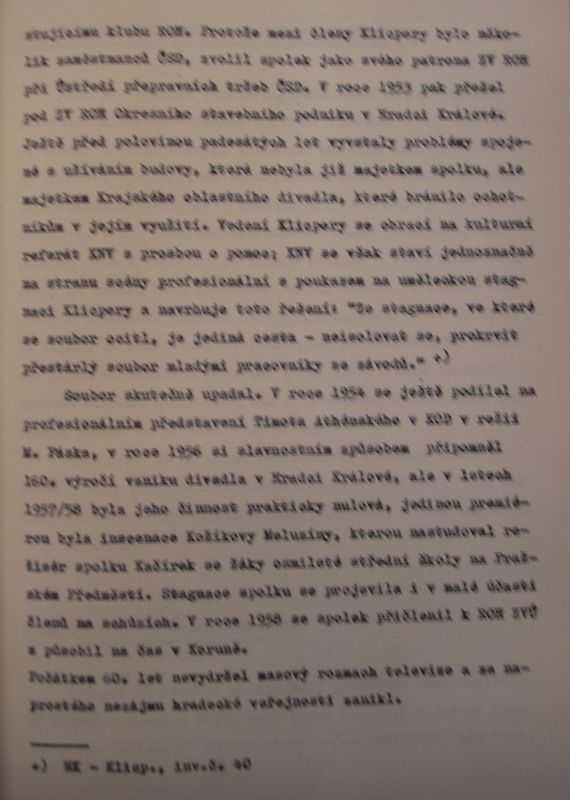 Jednota divadelních ochotníků Klicpera / Divadelní klub Klicpera ROH - ÚPT - ČSD n.p. (Ústředí přepravních tržeb Československých státních drah) / Divadelní kroužek Klicpera ZV ROH Okresního stavebního podniku v Hradci Králové /
