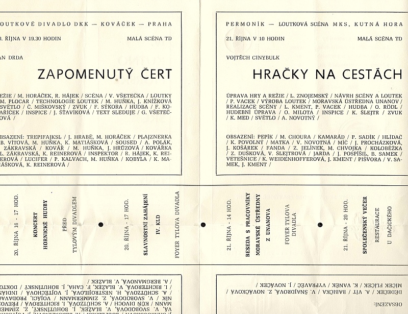 Zdroj: DAVÍDEK, Jiří: Ohlédnutí za XI. festivalem pražských amatérských loutkářů. Československý loutkář 1979, č. 3, s.65 - 67.