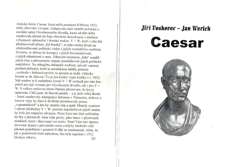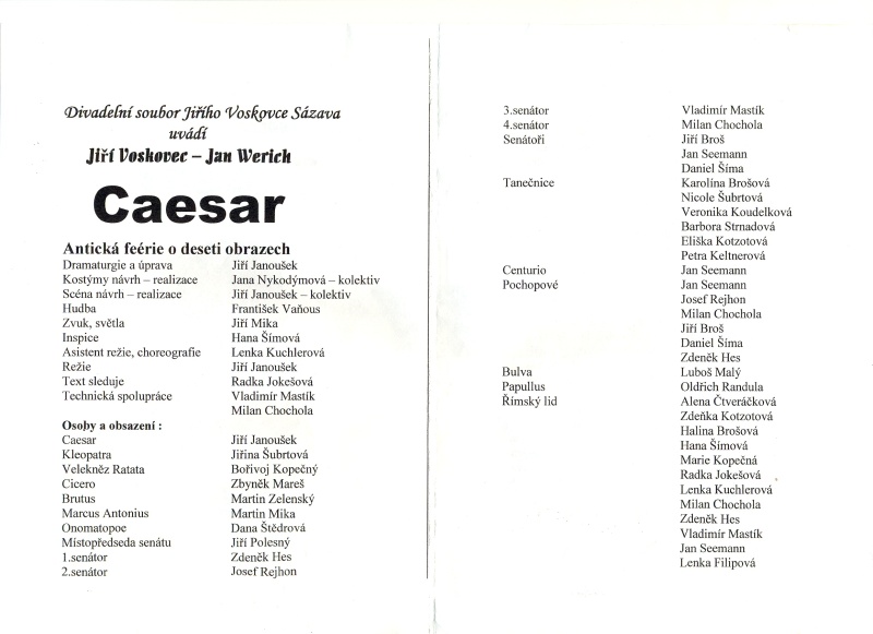 2005 - Jiří Voskovec a Jan Werich: Caesar, režie J. Janoušek. Účast na Voskovcova Sázava.